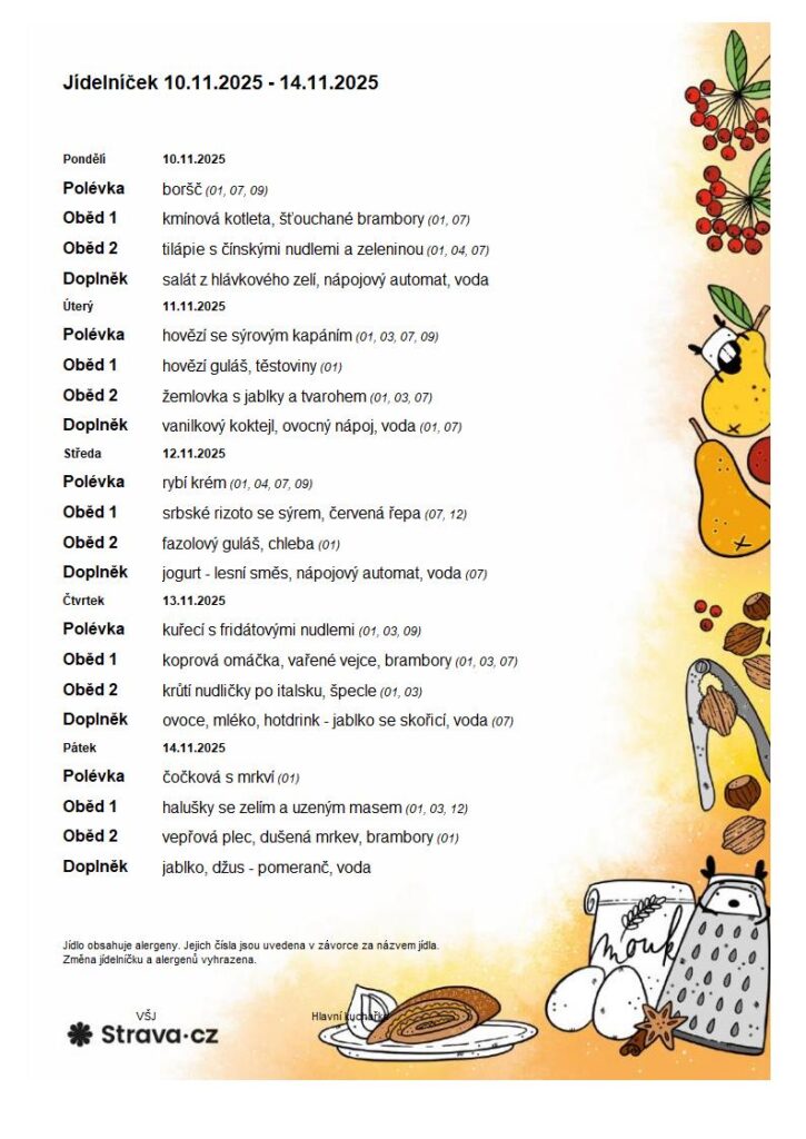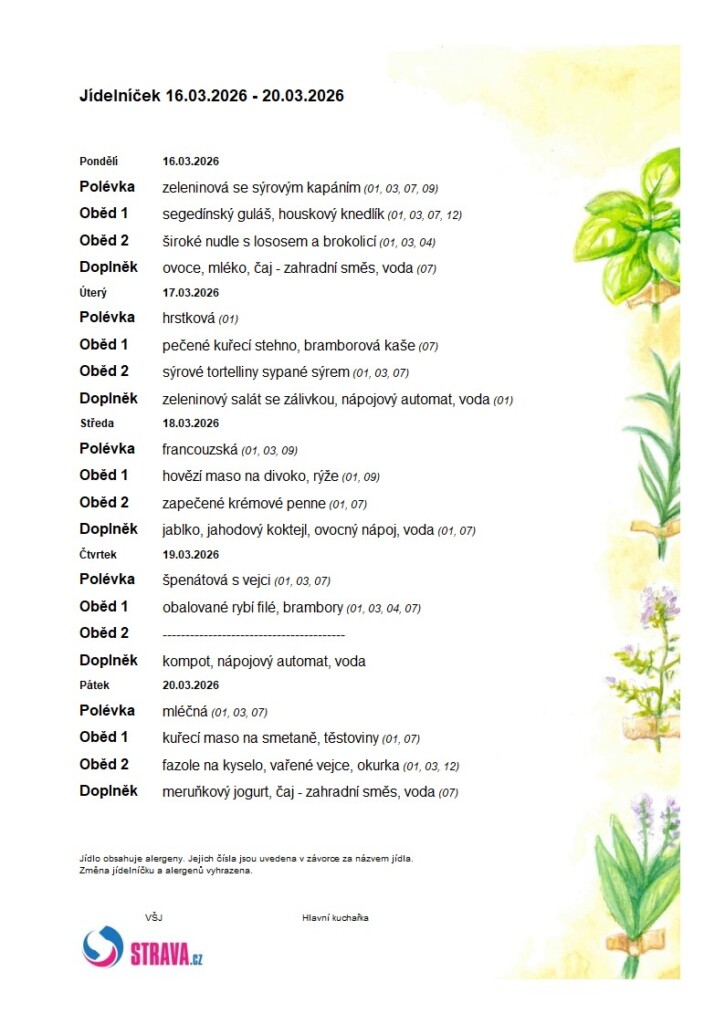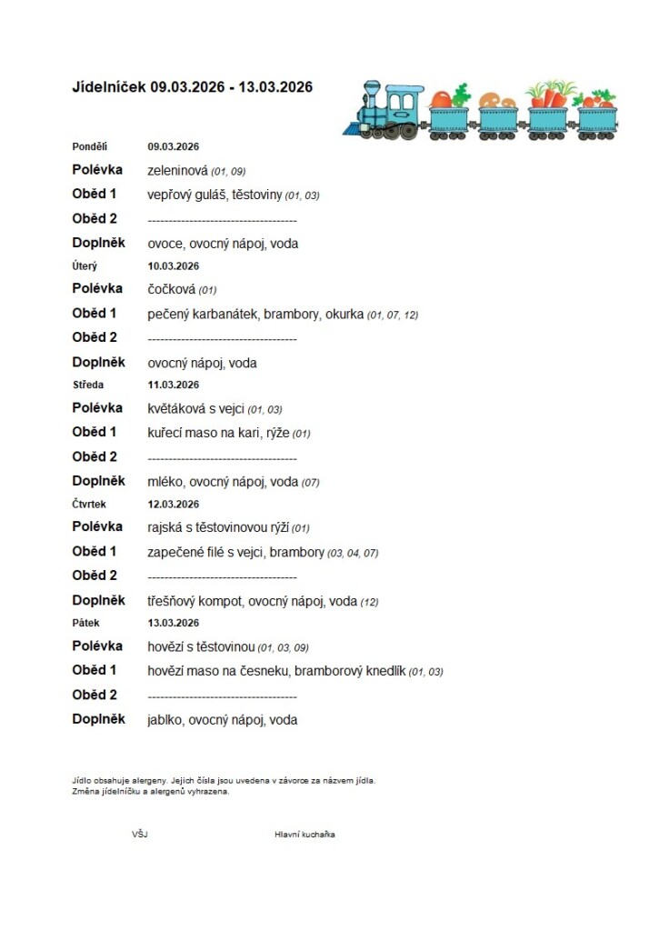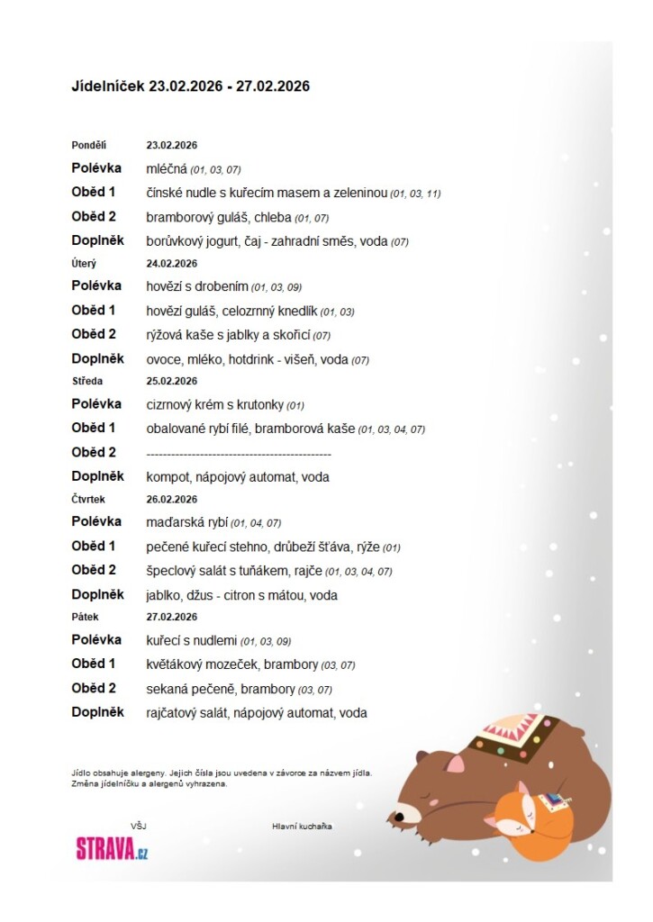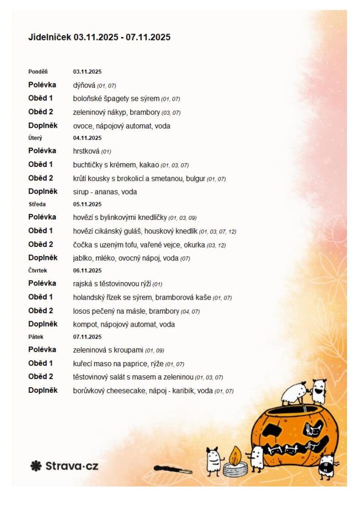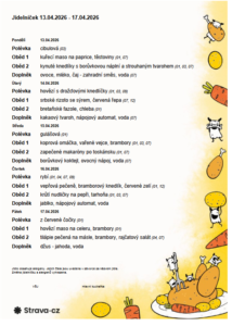 Níže naleznete jídelníčky na jednotlivé týdny.